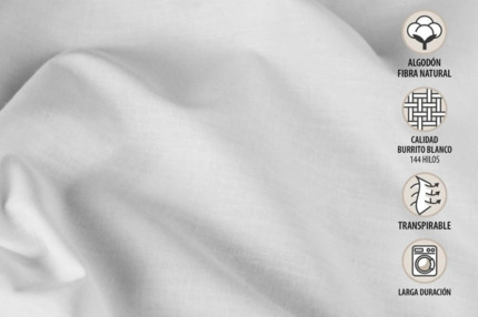 Sábanas de hotelería marca Burrito Blanco color gris 50% Algodón, 50% Poliéster